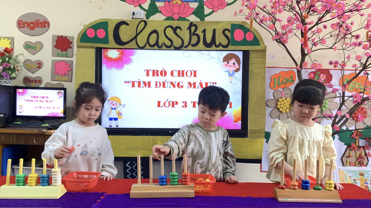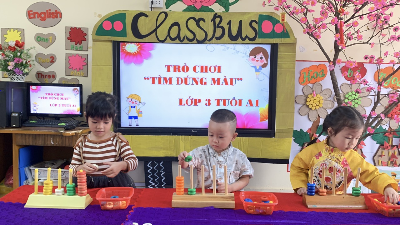 Cùng bé nhận biết, phân biệt màu sắc qua trò chơi "Tìm đúng màu" của các bạn nhỏ lớp 3 tuổi A1