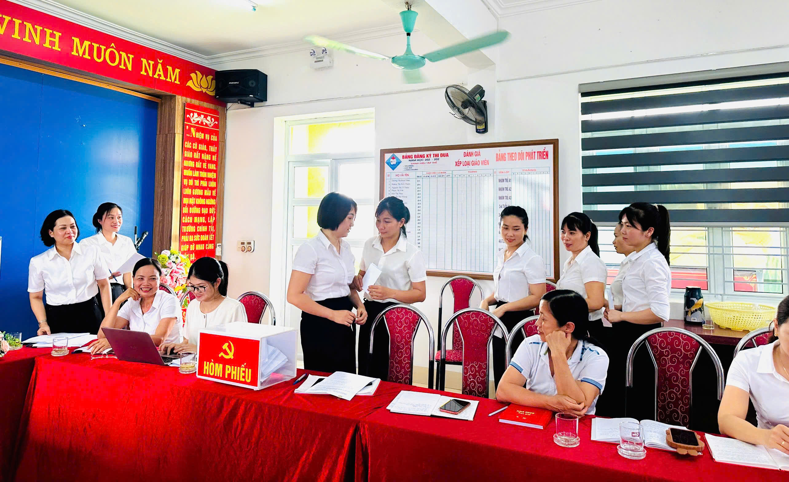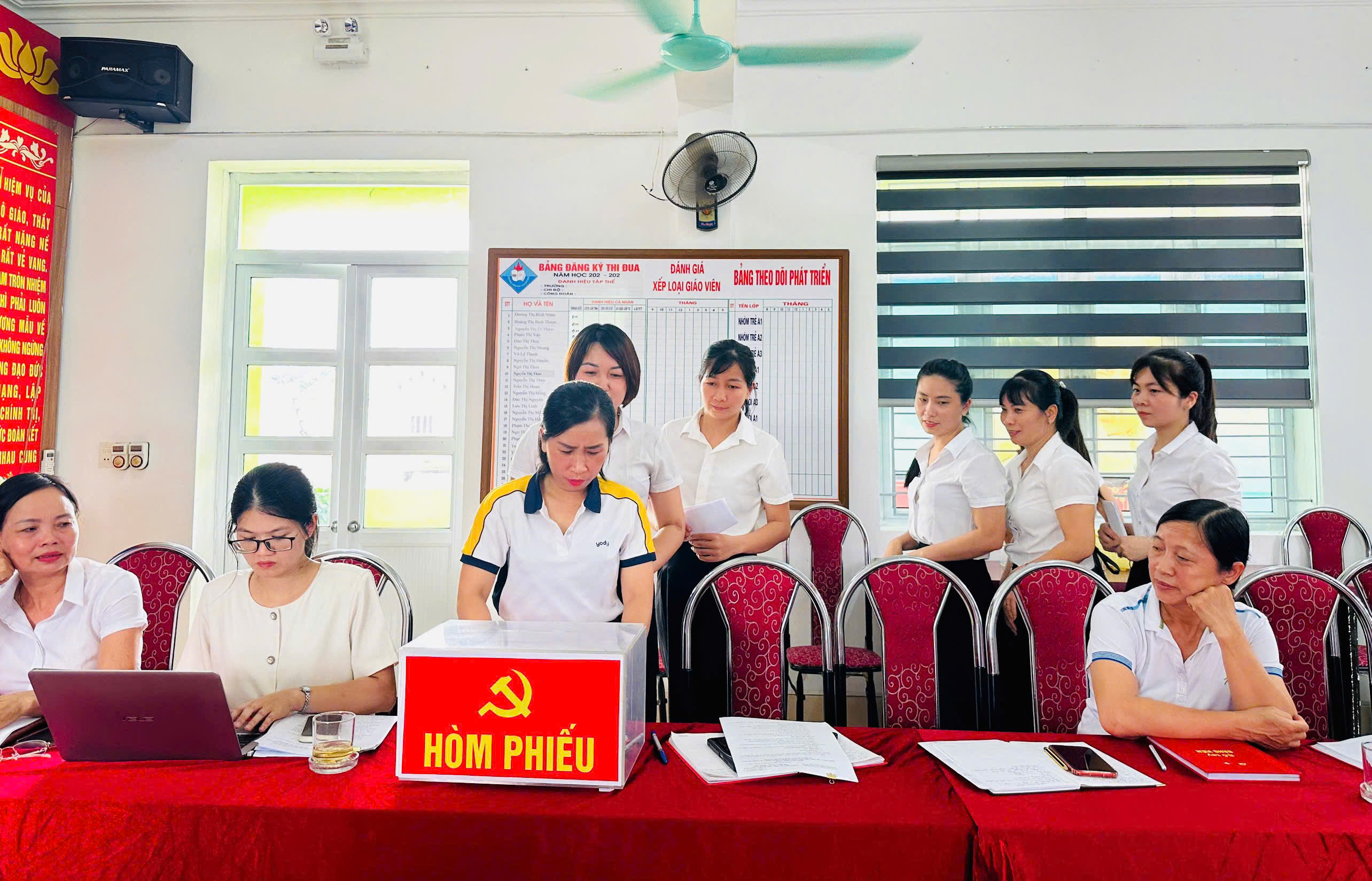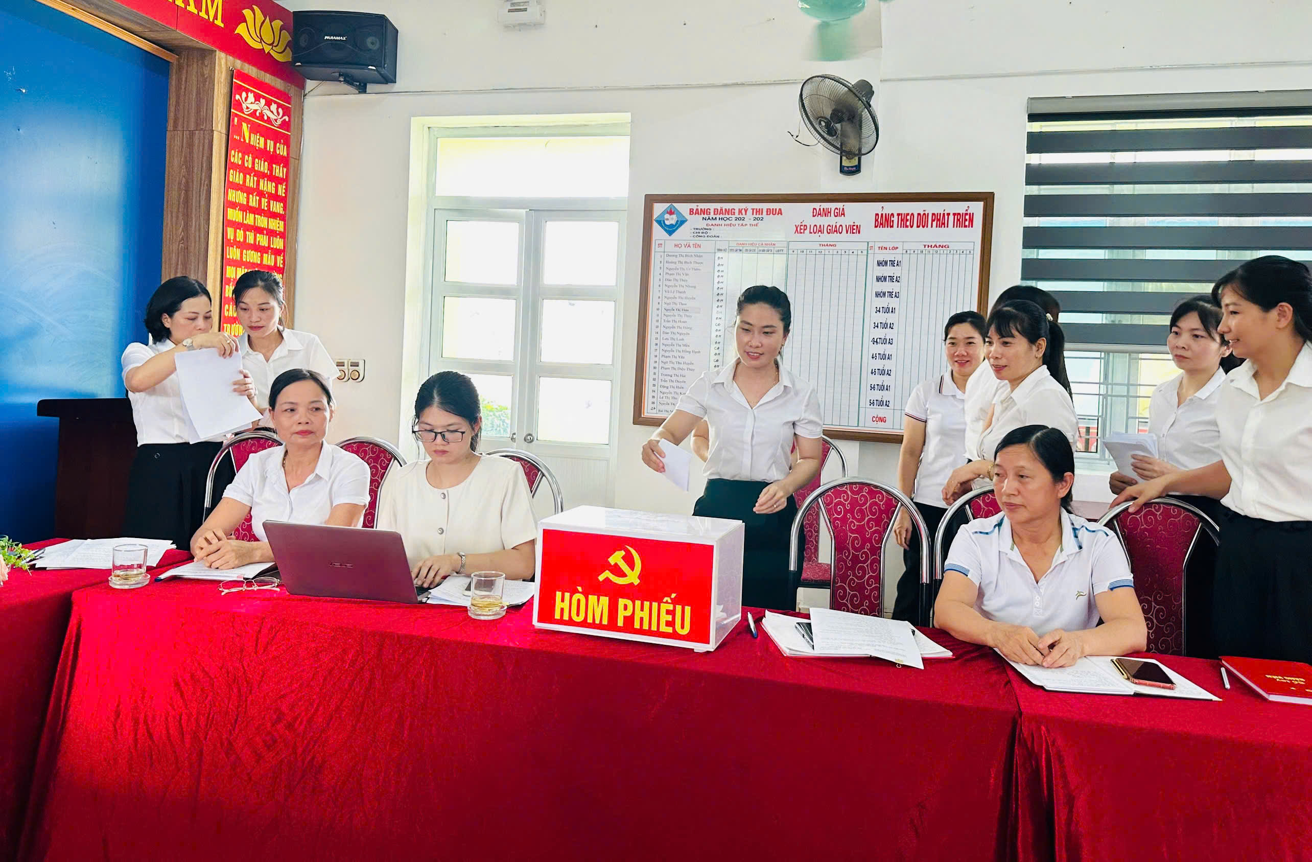 Sau phần đánh giá và thảo luận, Hội nghị đã tiến hành bỏ phiếu tín nhiệm công khai, dân chủ và đúng quy trình. Kết quả lấy phiếu tín nhiệm thể hiện sự tín nhiệm cao từ tập thể sư phạm nhà trường đối với đồng chí Hoàng Thị Bích Thược.