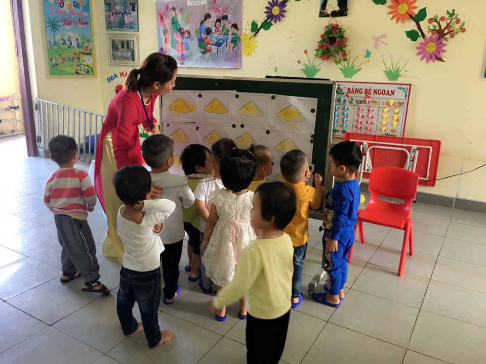 Trường mầm non Nguyễn Huệ tổ chức thi giáo viên giỏi cấp trường năm học 2017 - 2018Trường mầm non Nguyễn Huệ thực hiện nhiệm vụ năm học, phấn đấu đạt thành tích năm học 2017-2018. Hội thị giáo viên dạy giỏi cấp trường được diễn ra từ ngày 11/11 đến ngày 16/11/2017, nhằm tuyển chọn, công nhận giáo viên đạt danh hiệu giáo viên giỏi cấp trường, tạo điều kiện để giáo viên thể hiện năng lực, học tập, trao đổi kinh nghiệm về chăm sóc, giáo dục trẻ mầm non, khai thác sử dụng ứng dụng CNTT, sử dụng hiệu quả phương tiện, đồ dùng, đồ chơi thực hiện chương trình giáo dục mầm non. Góp phần đẩy mạnh các phong trào thi đua trong trường học, khuyến khích động viên, tạo cơ hội để giáo viên tự học và sáng tạo. Thông qua hội thi Ban tổ chức đã tuyên dương, nhân rộng điển hình tiên tiến trong hoạt động chăm sóc giáo dục trẻ góp phần nâng cao chất lượng giáo dục mầm non tại trường.